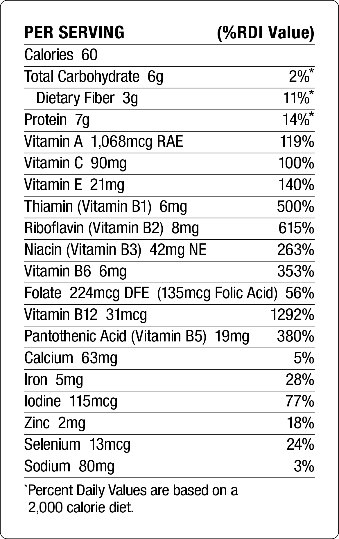 Dr. Schulze’s Superfood PLUS is a nutrient-dense, easy-to-assimilate product. Two tablespoons of powder or 15 tablets contain 6mg of Vitamin B6.