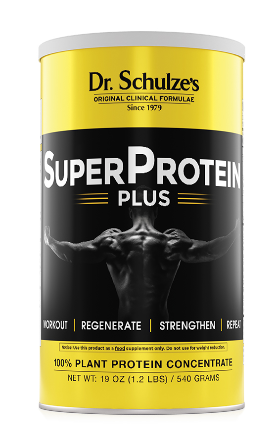 Mix one scoop of Dr. Schulze's SuperProtein Plus in a blender with 8 ounces of fresh, organic fruit or vegetable juice and 8 ounces of pure water. Add a banana or anything else you like! A single dose of SuperProtein Plus has 20 grams of Protein! But when mixed with Superfood Plus, it has 26 grams of Protein! Or mixed with SuperFood ULTRA, it has a whopping 30 grams of Protein!